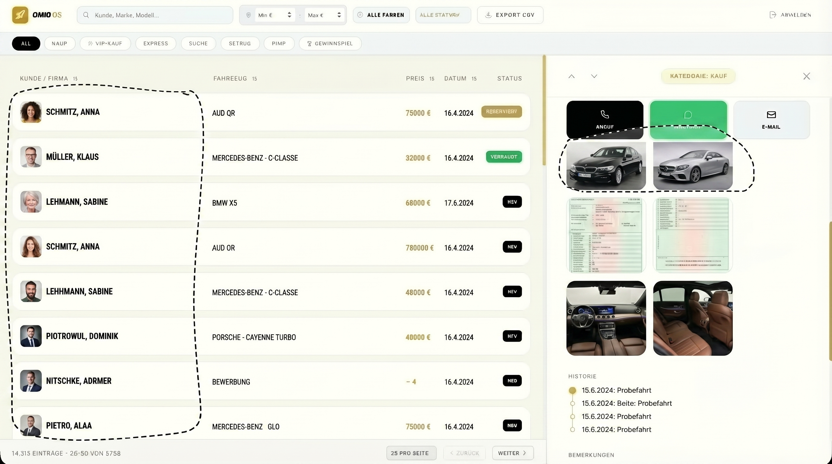Zentrale Plattform fuer Fahrzeugverwaltung, Kundenbeziehungen und Vertriebsprozesse.